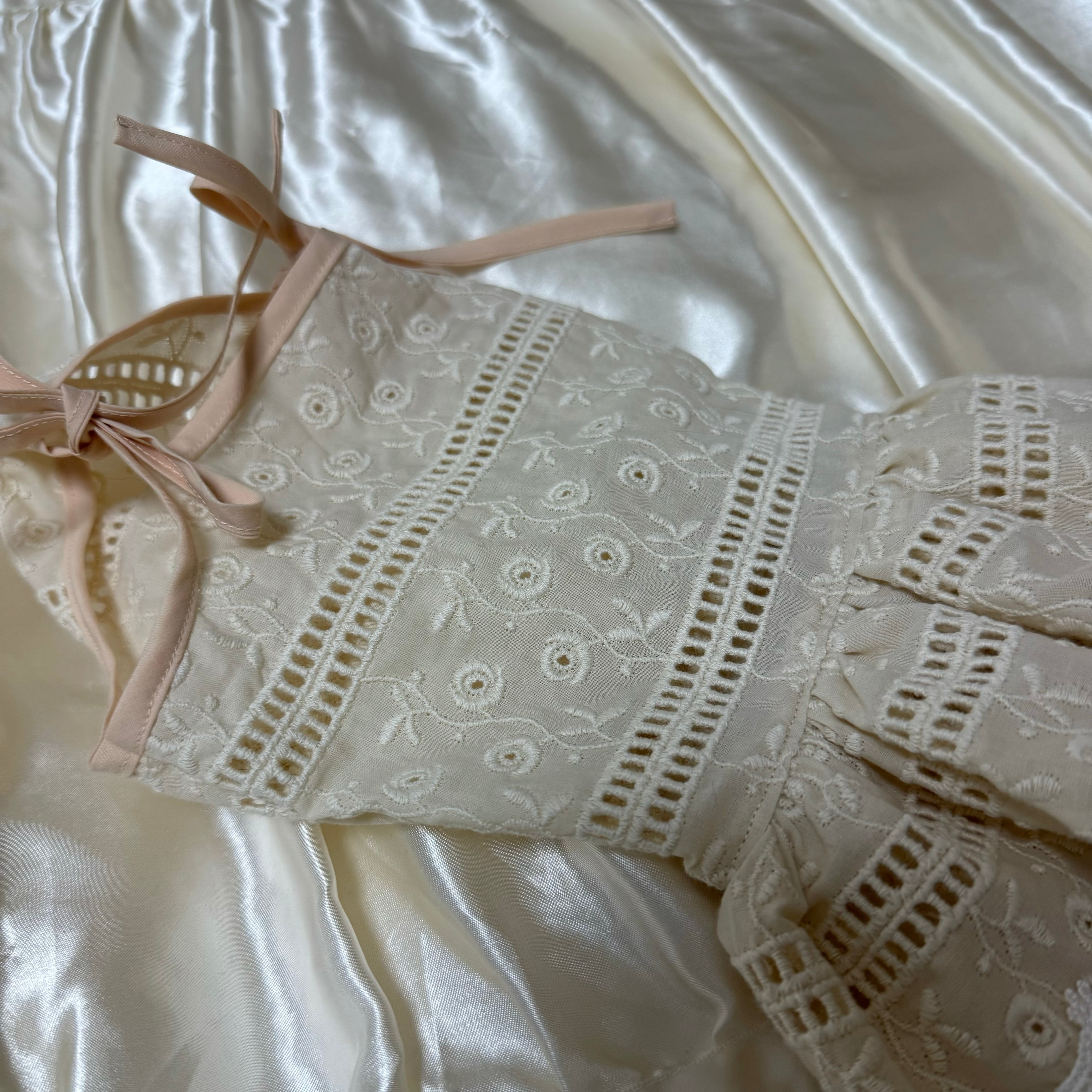 コットンモチーフのレースをふんだんに使用して